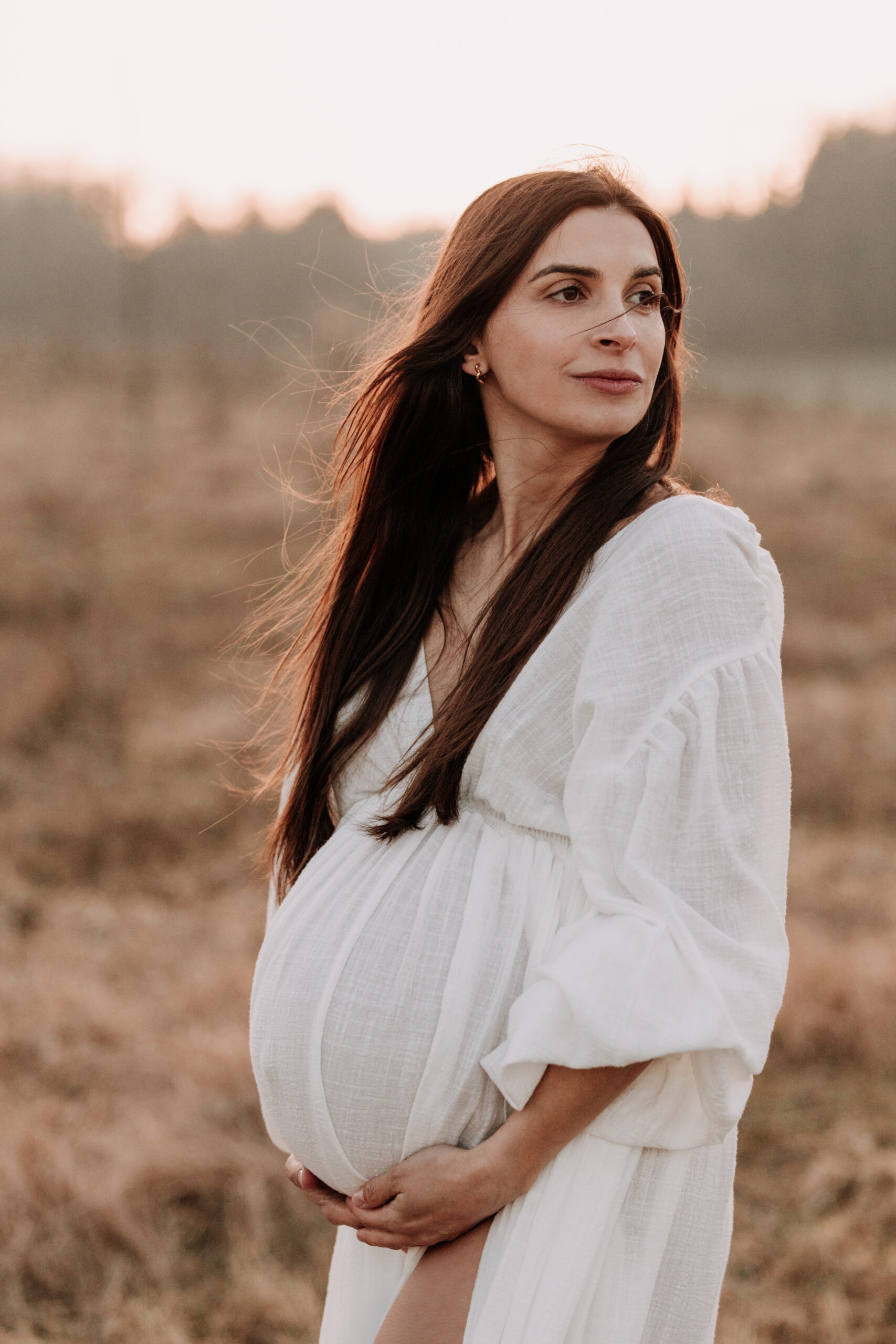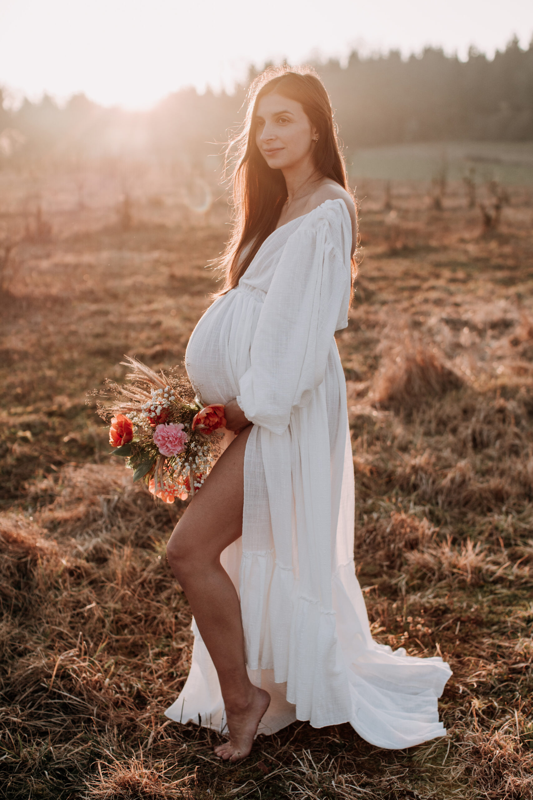 Meine Babybauchshootings in München finden überwiegend in der Natur statt – am liebsten an idyllischen Seen mit trockenem Schilf, auf goldenen Feldern oder blühenden Wiesen, immer zum perfekten Licht bei Sonnenuntergang. Mit meiner langjährigen Erfahrung, einem geschulten Blick für Licht und Moment sowie einer großen Auswahl an Babybauch-Kleidern und Outfits gestalte ich entspannte, ungezwungene Shootings, bei denen ihr euch rundum wohlfühlt.